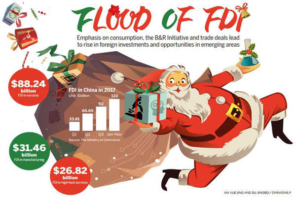 This Christmas, it appears as though Santa Claus has unfolded a big bagful of FDI, or foreign direct investment, in China.