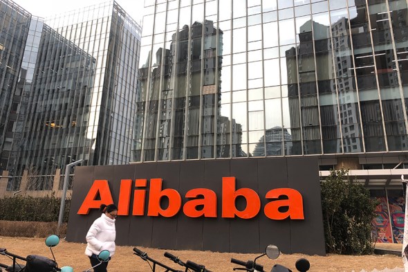 A woman walks past an Alibaba complex in Beijing. (Photo provided to China Daily)