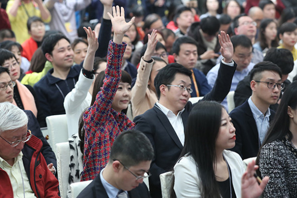 Reporters hope to be called on at a news conference for the first session of the 13th National Committee of the Chinese People's Political Consultative Conference at the Great Hall of the People in Beijing. The session begins on Saturday. (Photo/Xinhua)