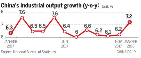 "The national economy has maintained stable and sound development in the first two months of 2018," said NBS spokesman Mao Shengyong.