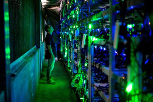 A technician checks mining equipment at a bitcoin mine in Sichuan Province. (Photo provided to China Daily)
