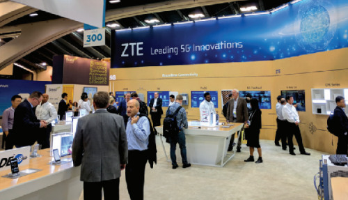 Visitors drop by ZTE's booth at the MWC Americas 2017 on Wednesday in San Francisco. (LIA ZHU / CHINA DAILY)
