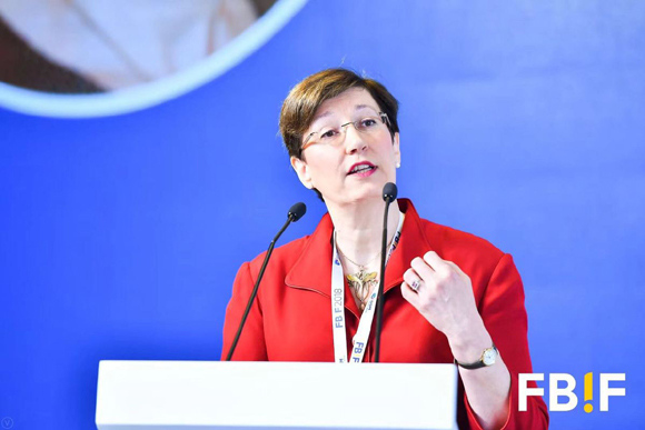 Isabelle Esser, executive vice president for research development foods at Unilever, delivers a keynote speech at the Food and Beverage Innovation Forum 2018 in Shanghai on April 18, 2018. (Photo provided to chinadaily.com.cn)