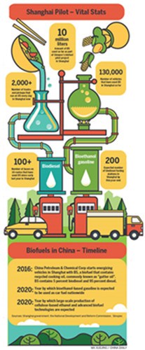 To promote the use of biofuel, the National Development and Reform Commission and the National Energy Administration rolled out a plan last year to promote the use of ethanol in gasoline nationwide for cars by 2020.