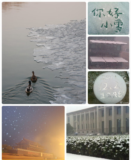 Beijing (CNS) -- Beijing is dusted by its first snow of the year at twilight on December 2. Continuous movement of strong cold air has chilled many parts of the north, northwest and northeast of China, forming just enough of the white stuff to stick to the ground.
