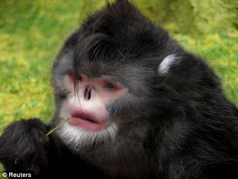 "Snub-nosed monkeys are completely black with a small tuft of white hair by the ears and cheeks, a unique white goatee, and a tail almost 1.4 times the length of their body. Their faces are light pink, and the perineum region white," according to Long.