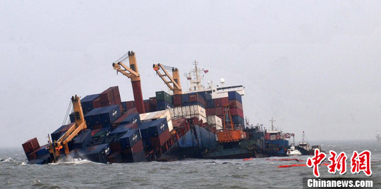 The crippled freighter carried 216 standard containers, fortunately without dangerous chemicals.