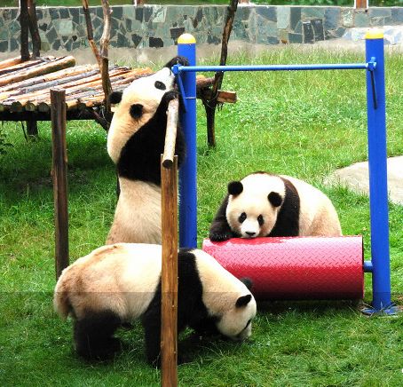 Wolong Nature Reserve suffered severe damage in the 7.8-magnitude earthquake on May 12, 2008, and had to send its three two-year-old giant pandas Sijia, Qianqian and Meiqian to Yunnan Wildlife Park.