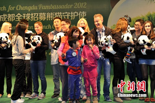 28日晚,伴随着欢快的节奏,一群憨态可掬的“熊猫”们在一段热辣的《江南Style》舞蹈中拉开了“2012年成都全球招募熊猫守护使”总决选帷幕。