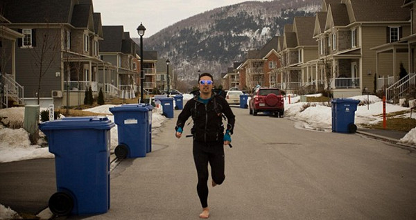 He will run barefoot because "no one else has done it," it's cheaper and he won't have to carry lots of running shoes with him.