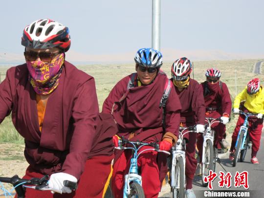 Qinghai (ECNS) -- On Sunday, five Tibetan monks broke with tradition by riding bicycles around Qinghai Lake, a "sacred lake" for followers of Tibetan Buddhism in Qinghai province.
