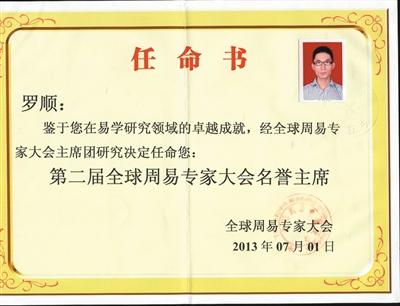 Luo Shun, the post-80s generation store-owner, claims to rank among the "Global Top 10 Zhouyi Masters" and to be the "Honorable President of the 2nd Global Zhouyi Experts Conference." He also has hundreds of thousands of followers on WeChat, Sina Weibo and other social media. However, reporters found that his titles were granted by a Hong Kong-based private company, not a non-profit academy.