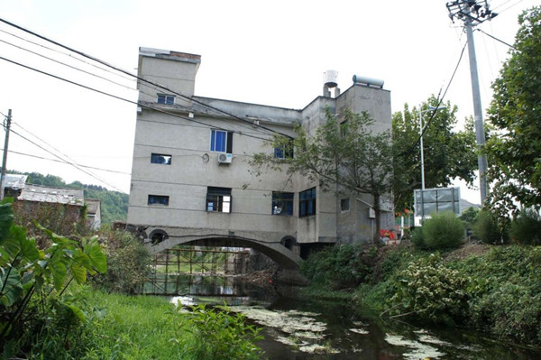 Referred to as a "most impressive structure," the building in Huangze village was built on a bridge above a river in 1991.