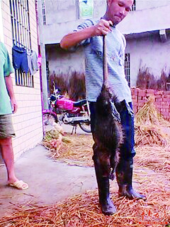 (ECNS) -- The Environmental Protection Bureau in Central China's Hunan province said on Sunday that villagers in Shaoyang county had killed a 5.1-kilogram, 90-centimeter giant rat, according to voc.com.cn.