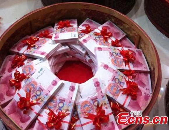 (ECNS) – A man in Yiwu, Zhejiang province, has sent 8.88 million yuan (US$1.5 million) in cash, which weighs in at 102 kilograms, as part of a gift to his fiancee, according to CRI Online.