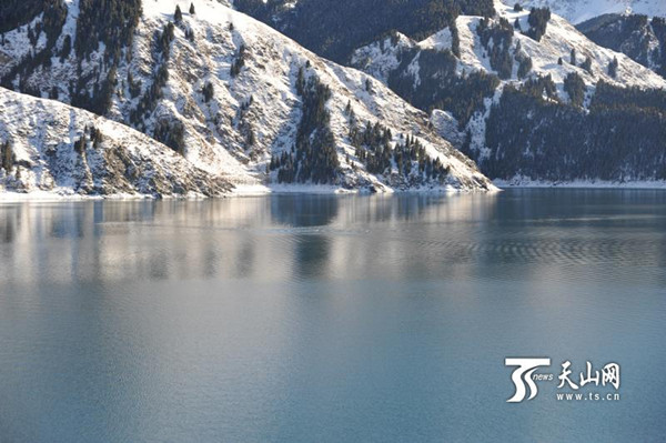 (ECNS) -- A picture of "lake monsters" at Heaven Lake (Tianchi Lake) located on Mount Bogda, Fukang city of Xinjiang, released on Monday shows two creatures swimming with their white dorsal fins above the water.