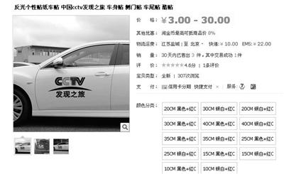 (ECNS) -- Vehicle stickers with the logo of China Central Television (CCTV) have become hot products on Taobao.com, China's largest online shopping site.