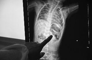 At a local hospital, doctors took an X-ray and found a needle-shaped metal object had punctured his left kidney.