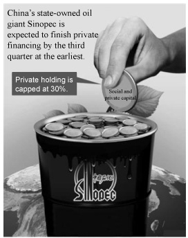 Sinopec is the first oil company to introduce private capital since the central government unveiled its plan last month to reform state-controlled enterprises and encourage diversified ownership.