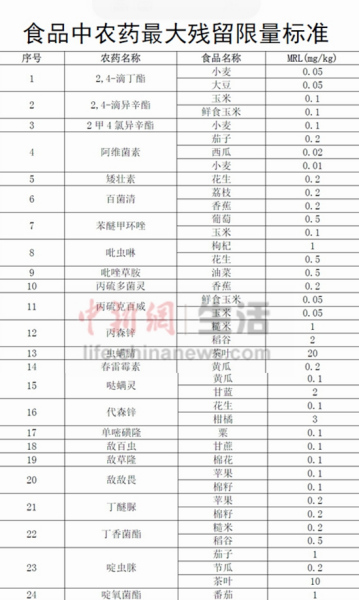 (ECNS) -- The Chinese government has set new guidelines on the maximum safe residue of 56 types of pesticides used for agricultural produce, amid increasing public awareness of food safety.