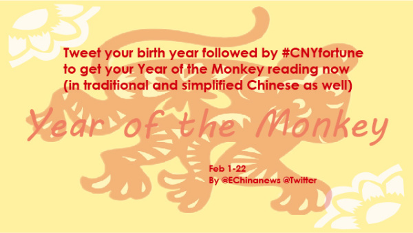 We're also partnering with Twitter in a fortune telling game. Tweet your birth year followed by hashtag #CNYfortune to get your 2016 Chinese zodiac reading!
