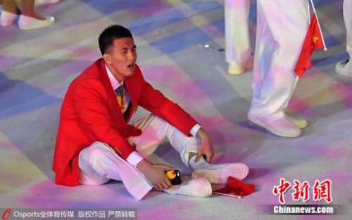 Chinese basketball player Guo Ailun's squat for a short rest during the Opening Ceremony of the Games made him an Internet star.