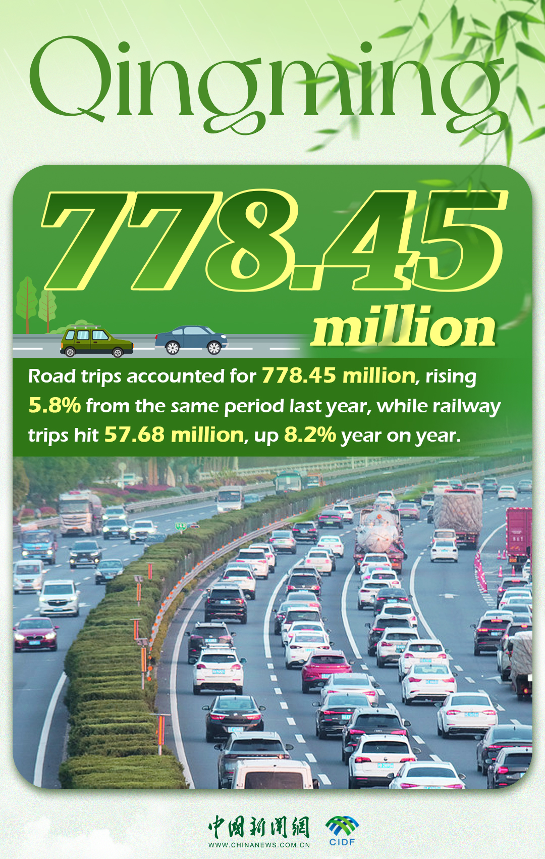 An estimated 845.38 million passenger trips were made across China during the three-day Qingming Festival holiday, up 6 percent year on year, according to the Ministry of Transport.