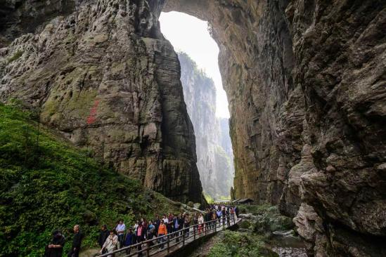 The Three Natural Bridges in Wulong, known for its karst scenery and as a filming location for Transformers 4, is already crowded with visitors even before the peak tourist season. Among them are many international travelers from France, Thailand, Vietnam, Russia and beyond.