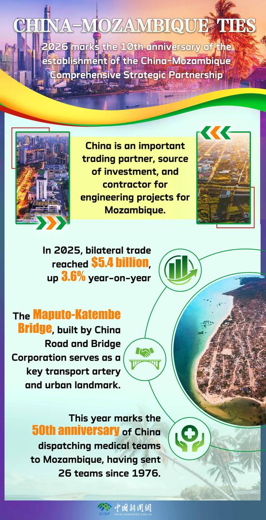 Marking the 10th anniversary of their comprehensive strategic cooperative partnership in 2026, China and Mozambique are seeing tangible progress in infrastructure, trade, and people-to-people exchanges, delivering momentum to local development and better livelihoods.