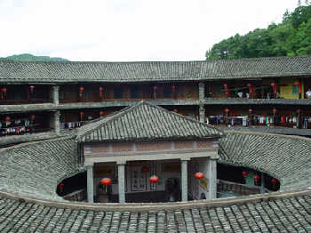 Tu Lou consists of square and round houses. Its characteristic is that the height of the first circle can reach as high as a five-storied house . Inside is a central courtyard. The ancestral hall is generally set up on the ground floor of the house on the axis facing the main door of the courtyard; or, a single-storied house is built within the courtyard to form the second ring or even the third, fourth and fifth ring.