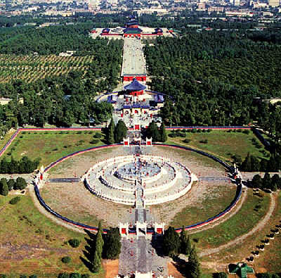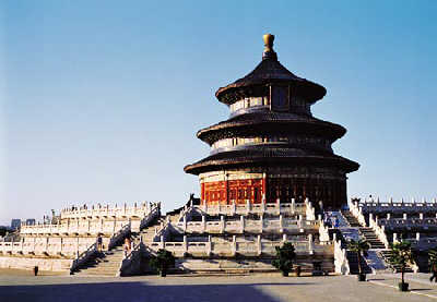 The Temple of Heaven is located on the east side of the front gate in the south city of Beijing. It is the place where emperors of the Ming and Qing dynasties worshipped and was built in the 18th year (1420) of the reign of Ming Emperor ChengZu. Thealtar, in a plane round shape, called Huanqiu Hill, was rebuilt in the 17th year (1752) of Qing Emperor Gaozong. Qiniandian (Hall of Prayer for Good Harvests) was rebuilt in the 16th year (1890) of Emperor Dezong.
