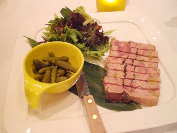 The free-range chicken breast and fresh tarragon terrine was on the lighter side and not as rich as the others. Paired with a hop-heavy spiced light ale, it was fresh-tasting with the tarragon flavor coming through, but my preference is for the richer pates and terrines.