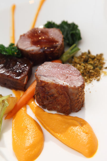 At a recent media tasting, pairings are generally innovative and well thought out. Very nice and tender lamb loin and braised lamb shoulder, for example, are served with carrots, pistachio crumble and kale.
