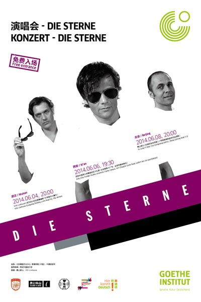 German rocks! The Goethe-Institut China invites you to a free indie rock concert to enjoy the German band "Die Sterne" at Yugongyishan in Beijing on Sunday, June 8, 2014.
