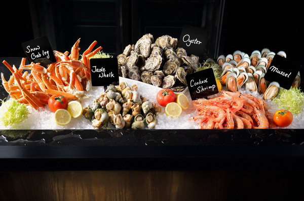 The lineup of succulent seafood on ice includes snow crab legs, shrimps, jade whelks and New Zealand mussels. Hot dishes will include classic Chinese, Hong Kong-style seafood specialties and Thai dishes.