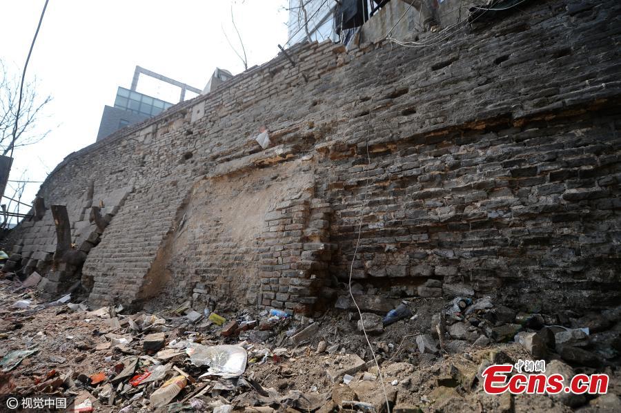 The remains of the old city wall in Jinan, capital of East China’s Shandong Province reappear after unauthorized buildings in front of it are destroyed, March 15, 2017. Jinan had massive, imposing city walls about 10.66 meters high and 16.67 meters wide during the Ming Dynasty (1368-1644), but they were mostly destroyed in 1950 to allow space to build a ring road, according to Li Ming, the director of the Archaeological Institute of Jinan City. The city plans to make the newly found 14-meter-long stretch of city wall the centerpiece of a cultural attraction. (Photo/CFP)