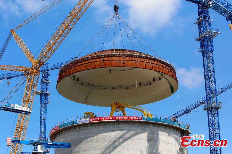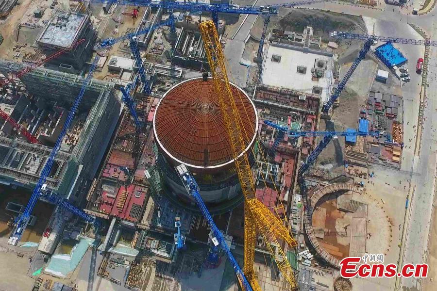 Photo taken on May 23, 2018 shows the installation site of a hemispherical dome at the No. 3 unit of Fangchenggang nuclear power station in south China's Guangxi Zhuang Autonomous Region. The dome has been installed on a reactor at China's nuclear power project in Fangchenggang using Hualong One technology, a domestically-developed third generation reactor design. (Photo: China News Service/Huang Huifang)