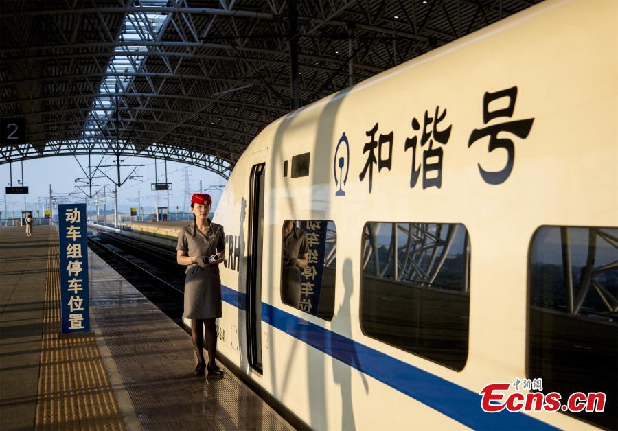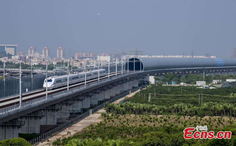 A high-speed train makes a pilot run from Jiangmen City to Zhanjiang City in Guangdong Province, May 28, 2018. Simulation exercises including malfunction and emergency case handling during the pilot run will provide scientific evidence for further operation. (Photo: China News Service/Yang Sheng)