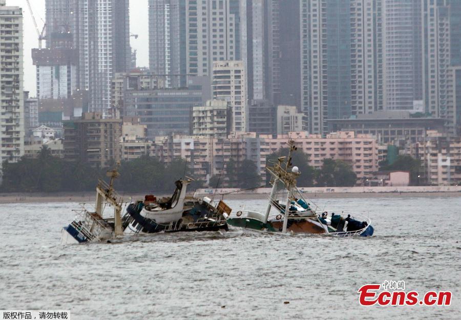 A privately owned floating restaurant "ARK deck bar" sinks near Mumbai's Bandra-Worli Sea link, India, at 7:15 p.m. local time, May 25, 2018. A total of 15 people were saved from the boat and no casualties were reported. (Photo/Agencies)