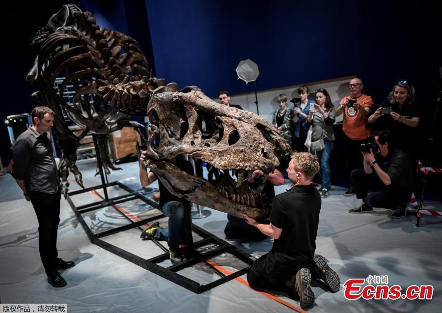 A 67-million-year old female Tyrannosaurus Rex discovered in the United States in 2013 is ready for an exhibition at the National Museum of Natural History in Paris, France. An exhibition titled "Un T-Rex a Paris" will run from June 6 until Sept. 2, 2018, displaying one of the most complete skeletons of the dinosaur in the world. (Photo/Agencies)