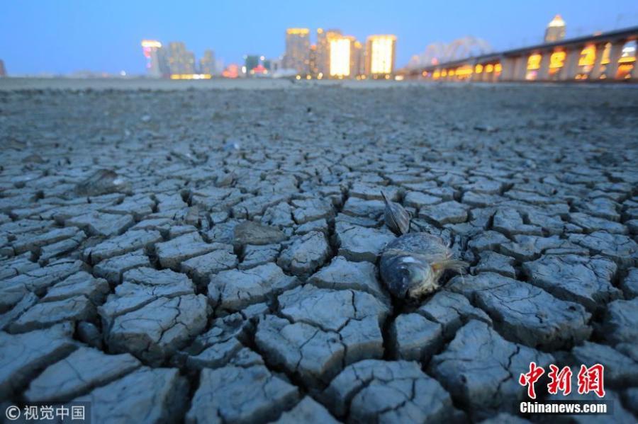 Picture taken on May 26, 2018 shows the dry bed of the Songhua River in Harbin City, Northeast China’s Heilongjiang Province. Many boats are stranded and the river bank has also dried up. (Photo/VCG)
