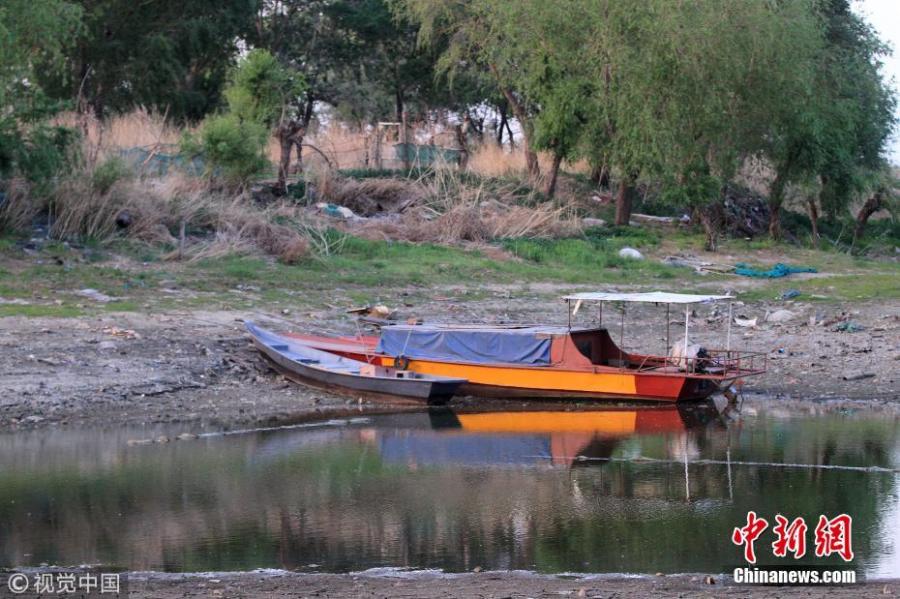Picture taken on May 26, 2018 shows the water level of the Songhua River has dropped to its lowest point since 2008 in Harbin City, Northeast China’s Heilongjiang Province. Many boats are stranded and the river bank has also dried up. (Photo/VCG)
