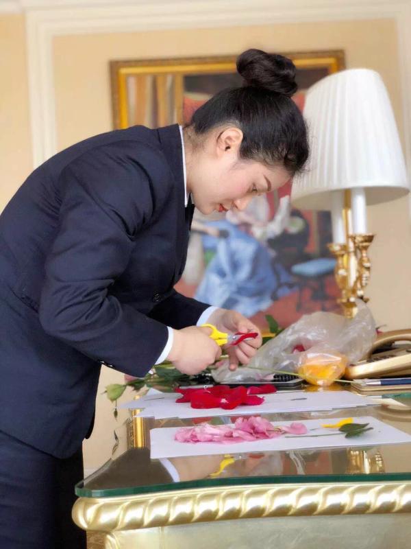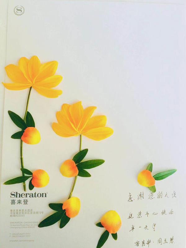 To offer guests a special experience during their stay, a hotel in SW China's Chongqing has created beautiful handmade welcome cards with colorful flower petals.