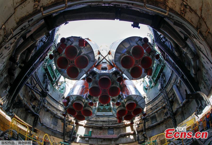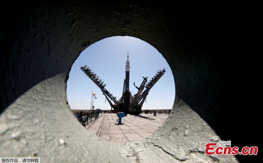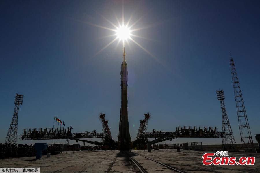The Soyuz MS-09 spacecraft for the next International Space Station (ISS) crew, formed of astronauts Serena Aunon-Chancellor of the U.S, Alexander Gerst of Germany and cosmonaut Sergey Prokopyev of Russia, is seen being set at the launchpad ahead of its upcoming launch, at the Baikonur Cosmodrome, Kazakhstan, June 4, 2018. (Photo/Agencies)