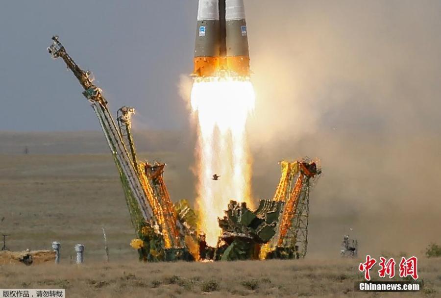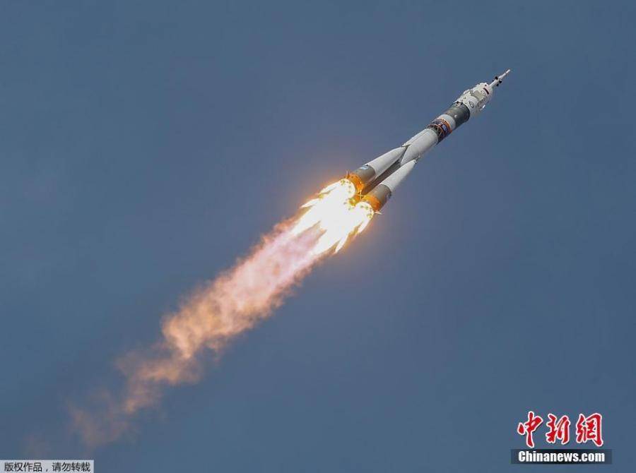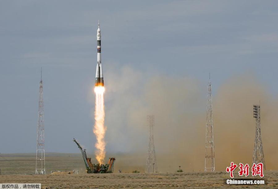The Soyuz MS-09 spacecraft carrying the crew formed of astronauts Serena Aunon-Chancellor of the U.S, Alexander Gerst of Germany and cosmonaut Sergey Prokopyev of Russia blasts off to the International Space Station (ISS) from the launchpad at the Baikonur Cosmodrome, Kazakhstan, June 6, 2018. (Photo/Agencies)
