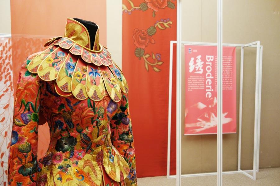 An embroidered silk dress is showcased at the Paris China Cultural Center on June 5, 2018. (Photo provided to Chinaculture.org)