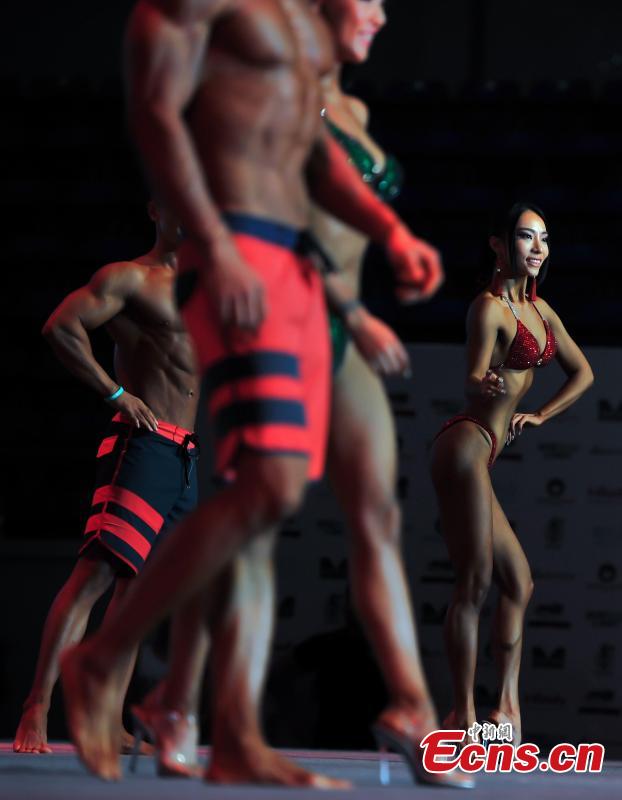 Contestants perform in the China Bodybuilding Championships in Tianjin, June 7, 2018. Organized by the Chinese Bodybuilding Association, the championships included seven events and attracted 698 participants from 165 cities. The event also selected Mr. Physique and Miss Bikini. (Photo: China News Service/Tong Yu)