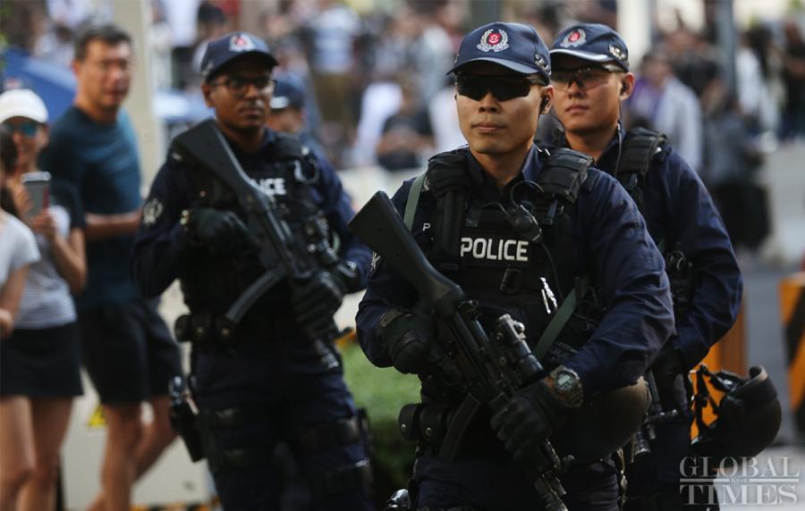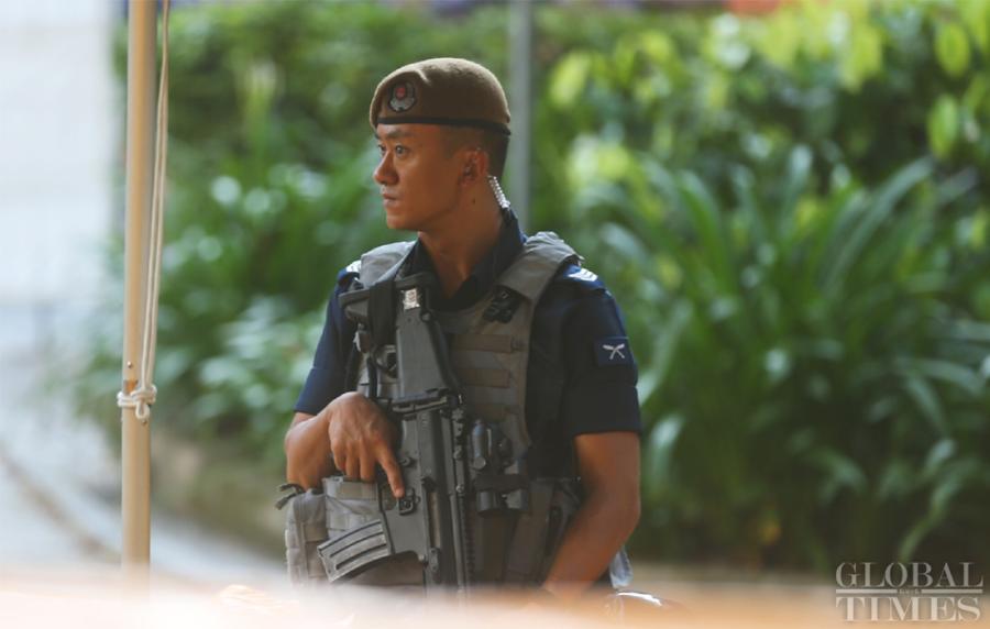 Police gather outside the Istana, the official residence and office of the President of Singapore on Sunday. (Photo: Yang Sheng/GT)