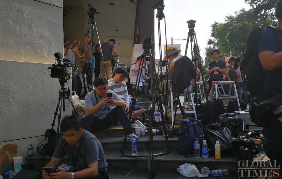 Journalists prepare outside the St. Regis hotel where DPRK leader Kim Jong-un has stayed in Singapore on Sunday. (Photo: Yang Sheng/GT)