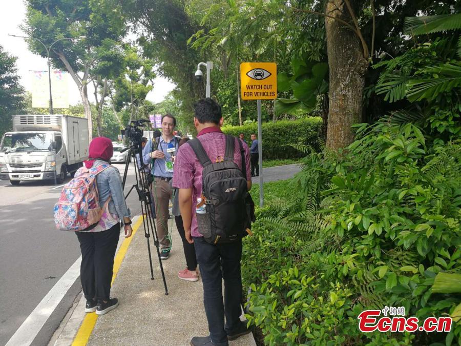 Reporters are seen near the Capella Resort on Sentosa Island, Singapore, June 10, 2018. The summit between United States President Donald Trump and Democratic People's Republic of Korea supreme leader Kim Jong-un will be held at the Capella Resort. (Photo: China News Service/Xu Fangqing)